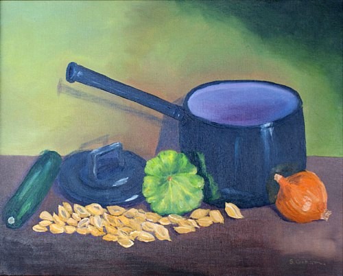 Description: Winter’s warmer! The lovely fresh produce that is found in Queensland inspired this painting. It is a simple painting for the kitchen.